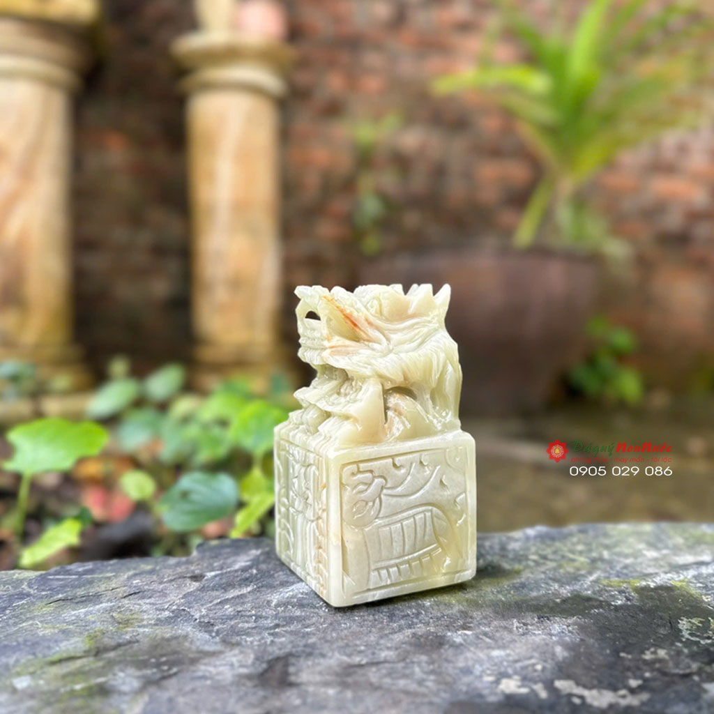 Mỗi ấn rồng tại daquynonnuoc.com được điêu khắc hoàn toàn thủ công bởi nghệ nhân lành nghề tại làng đá Non Nước – Ngũ Hành Sơn, Đà Nẵng. Từng vảy rồng, đường uốn lượn đến phần đế ấn đều được đục đẽo tỉ mỉ, không qua khuôn đúc.