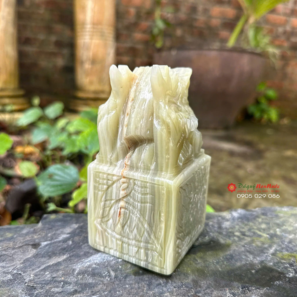 Điểm đặc biệt của ấn rồng đá ngọc Onyx tại đây là có thể khắc tên, dấu hiệu hoặc ký tự riêng bên dưới đế ấn theo yêu cầu – biến mỗi sản phẩm thành một tác phẩm cá nhân hóa hoàn toàn. Nhận đặt theo kích thước, loại đá hoặc mẫu mã riêng.
