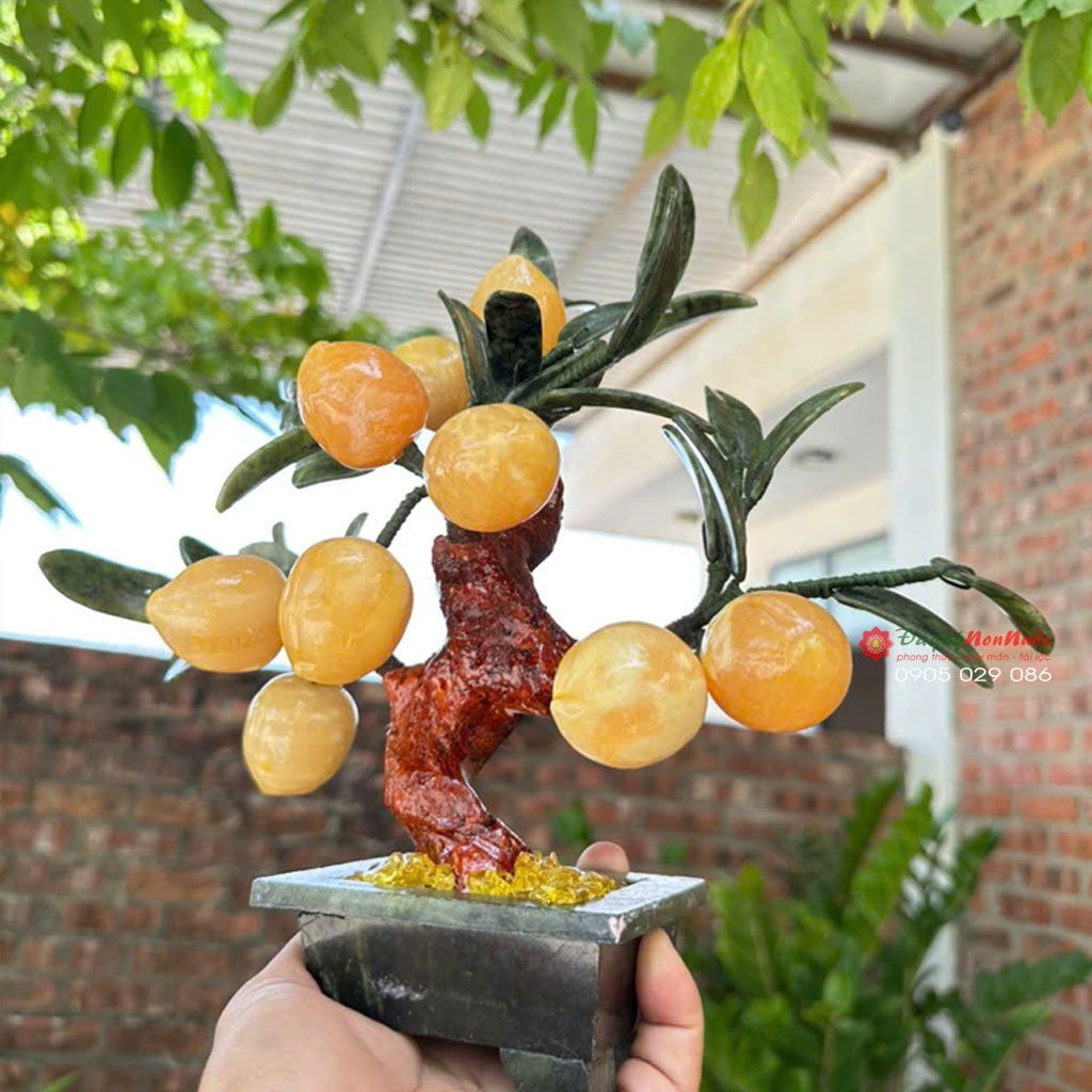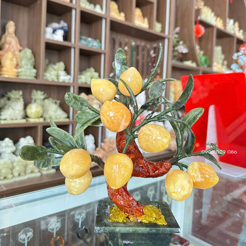 Cây đào đá ngọc hoàng long được chế tác tỉ mỉ từ đá ngọc hoàng long tự nhiên, mang sắc vàng óng ánh sang trọng, tượng trưng cho may mắn, tài lộc và sự trường thọ. Trong phong thủy, cây đào đá còn được xem là biểu tượng của hạnh phúc, thịnh vượng và sức khỏe dồi dào, giúp gia chủ thu hút năng lượng tích cực.