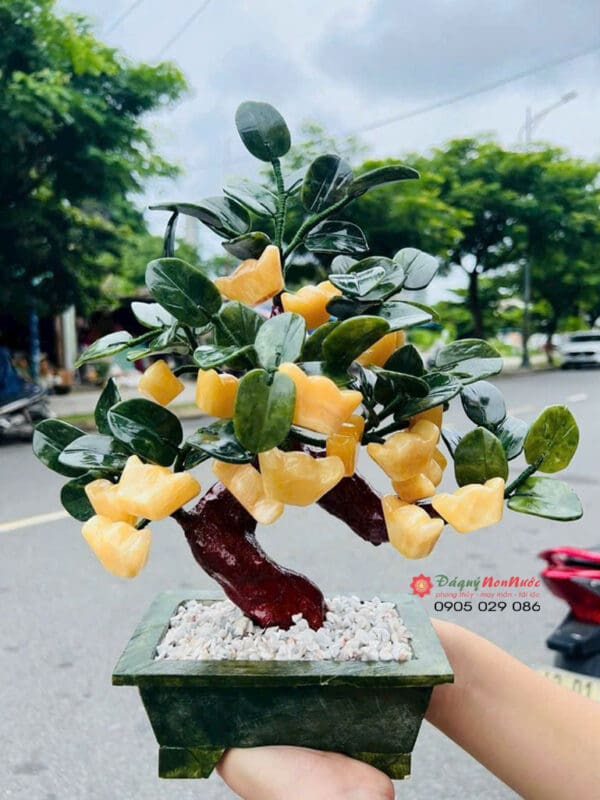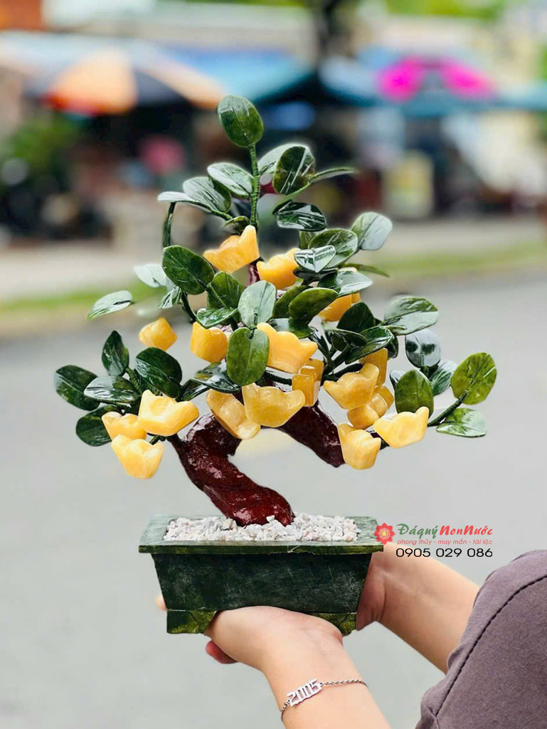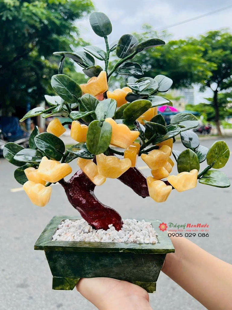 Theo phong thủy, cây kim tiền kết hợp với năng lượng tích cực từ đá ngọc hoàng long có khả năng kích hoạt tài lộc, hóa giải năng lượng xấu, đồng thời mang lại tinh thần thoải mái và an yên. Đây là lựa chọn phù hợp để trưng bày tại phòng khách, bàn làm việc hoặc cửa hàng kinh doanh.