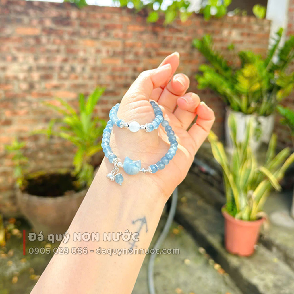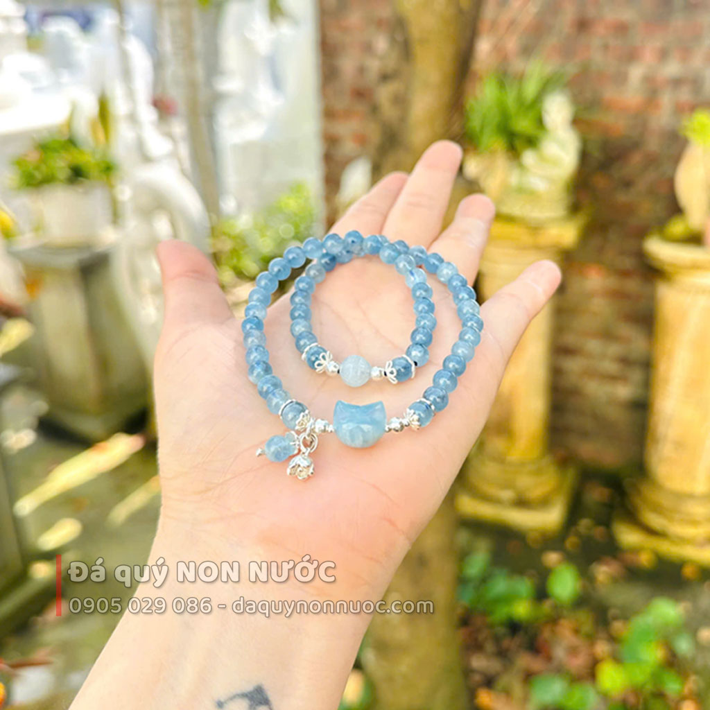 Vòng tay mèo thạch anh Aquamarine: Sắc xanh thanh khiết, vận may bình an