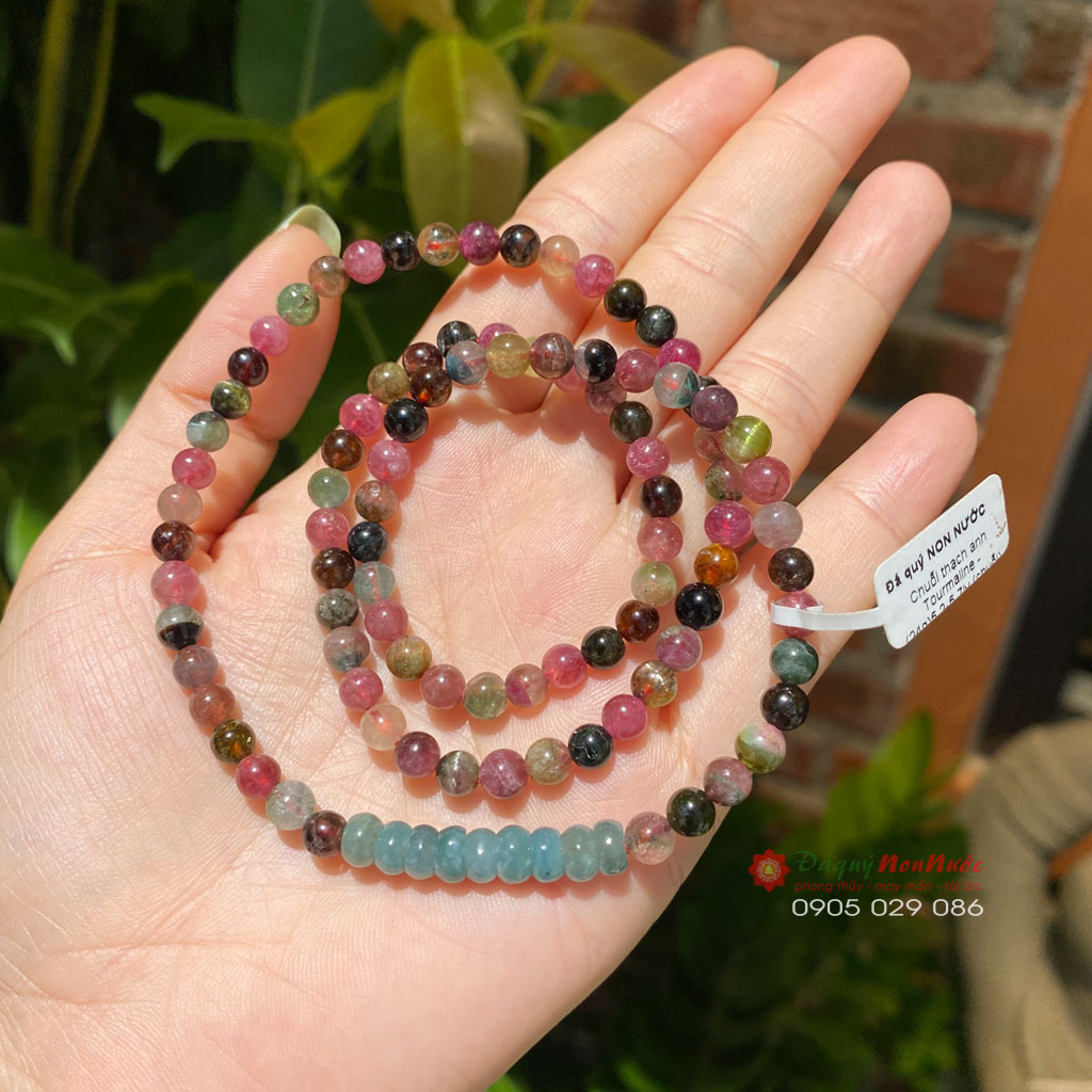 Chuỗi vòng tay Tourmaline mix lam ngọc là sự kết hợp độc đáo giữa hai loại đá quý tự nhiên: Tourmaline và Lam ngọc. Mỗi loại đá đều mang những đặc điểm và ý nghĩa riêng, tạo nên một món trang sức vừa đẹp mắt vừa mang lại nhiều lợi ích cho người đeo.