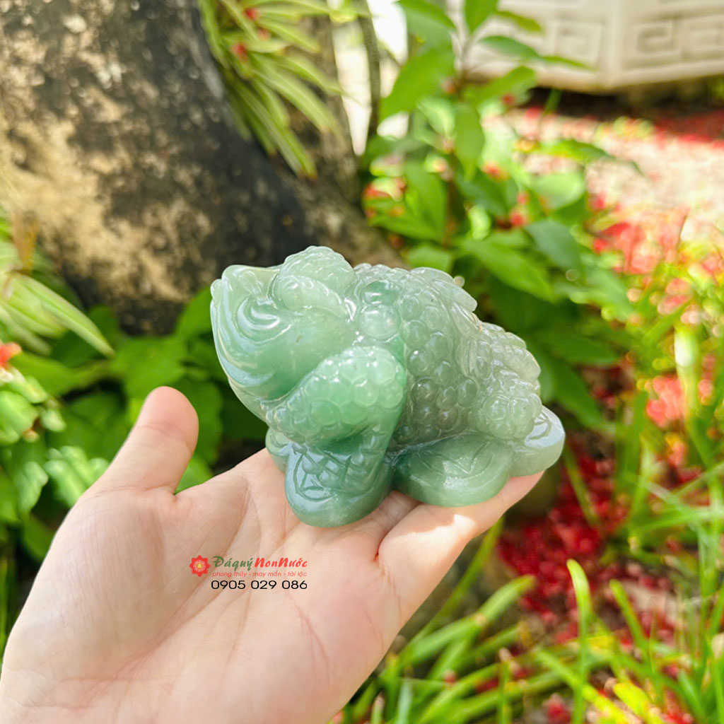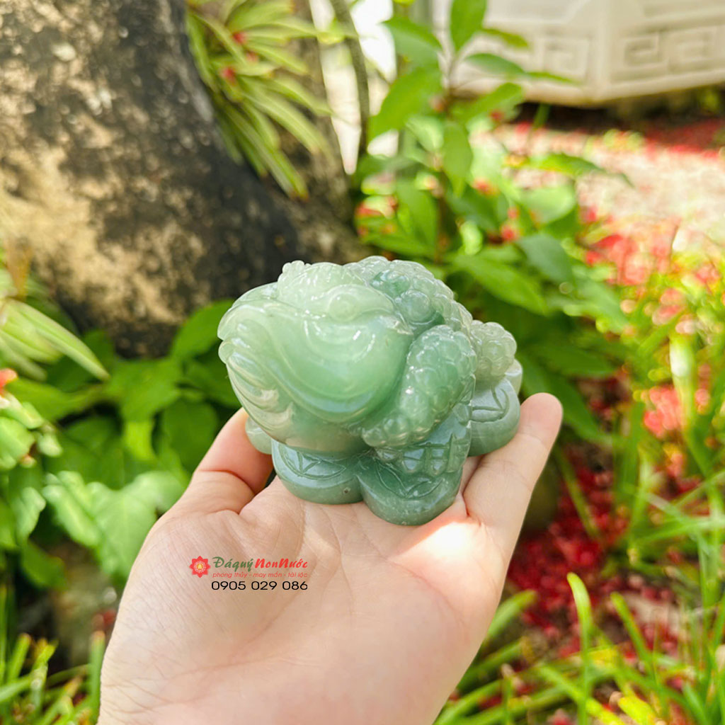 Cóc 3 chân đá thạch anh mang màu xanh lục nhạt dịu mát, tạo cảm giác gần gũi với thiên nhiên.