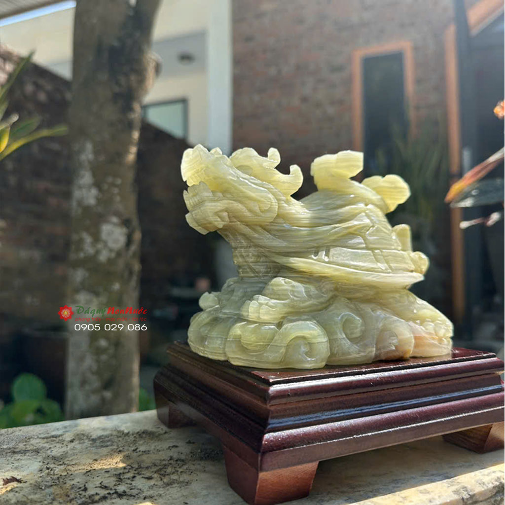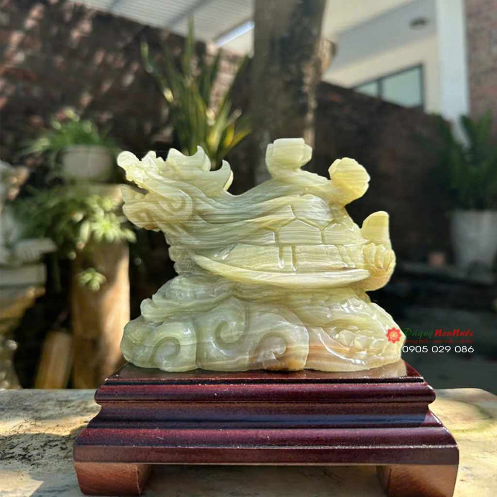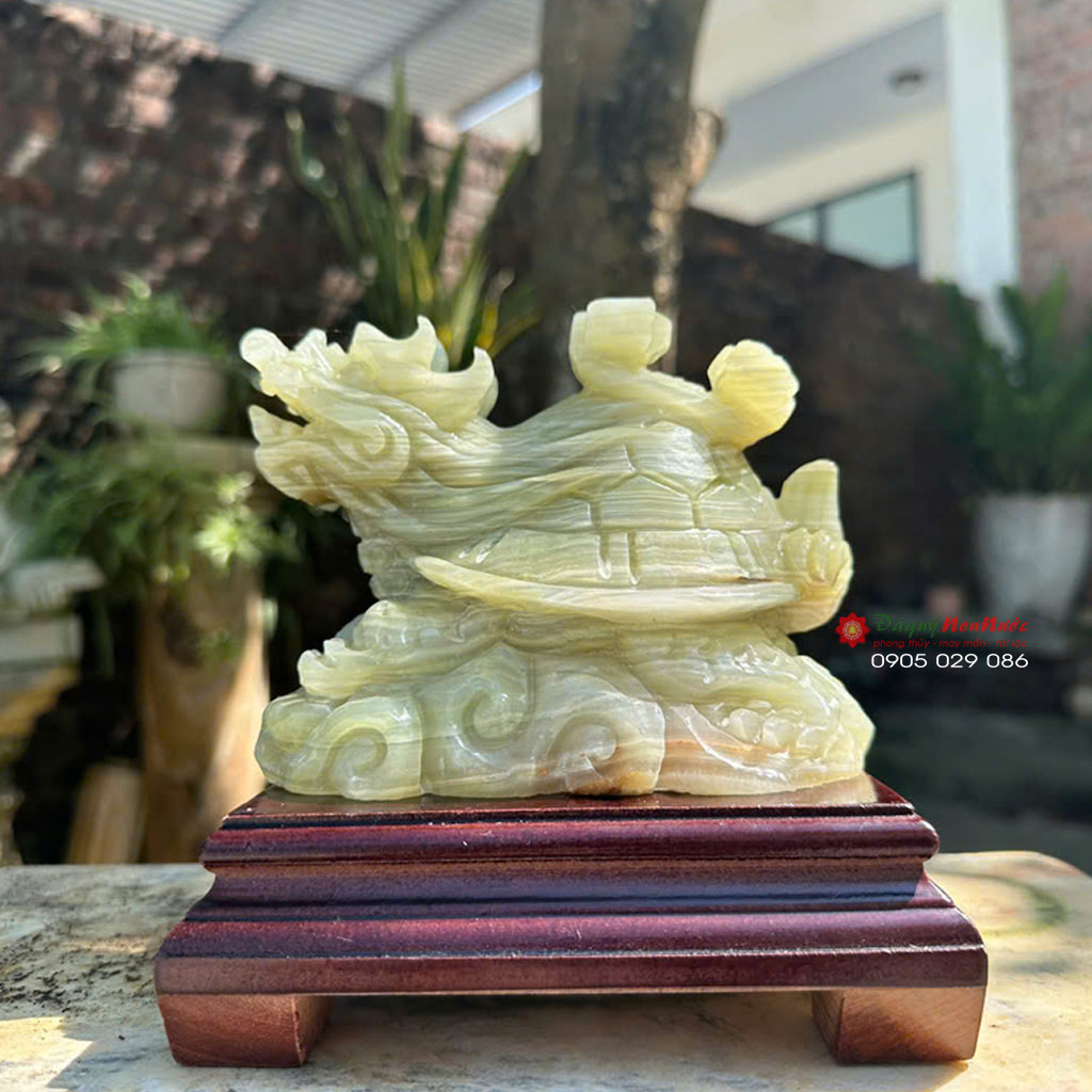 - Tượng Long Quy đá ngọc là vật phẩm phong thủy được chế tác từ đá ngọc quý, kết hợp hình tượng Long Quy – linh vật mang ý nghĩa quyền lực, may mắn, tài lộc và trường thọ. Sự kết hợp độc đáo này mang đến cho tượng Long Quy đá ngọc không chỉ vẻ đẹp sang trọng, tinh tế mà còn gia tăng năng lượng phong thủy mạnh mẽ, giúp gia chủ thăng tiến trong công danh, gia tăng tài sản và cuộc sống viên mãn.