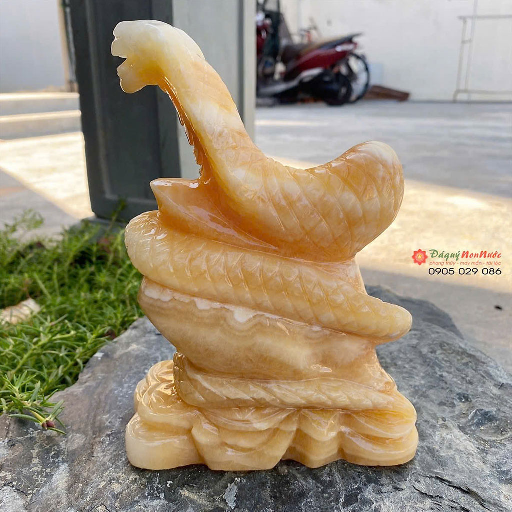 Trong phong thủy, rắn là biểu tượng của sự khôn ngoan, bản lĩnh và sức mạnh nội tâm. Đặc biệt, Tượng Rắn dành cho tuổi Tỵ chế tác từ đá ngọc hoàng long mang đến năng lượng tích cực, giúp chủ nhân tuổi Tỵ gặp nhiều may mắn, công danh hanh thông, tài lộc vượng phát.