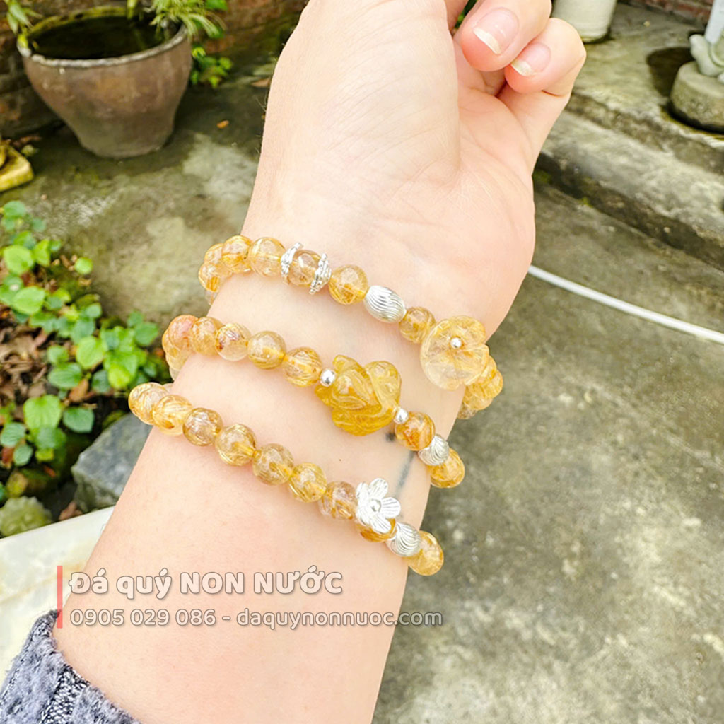 Thạch anh tóc vàng: Chứa các tinh thể rutin rực rỡ giúp kích hoạt trí tuệ, thu hút sự thịnh vượng và bảo vệ chủ nhân khỏi năng lượng tiêu cực.
