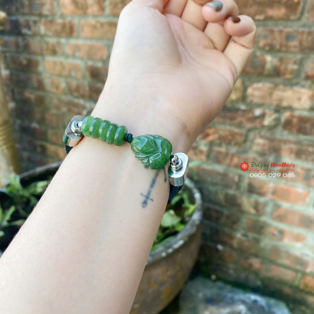 Vòng tay hồ ly ngũ phúc đá ngọc bích dây da Duyên dáng, bảo hộ, thu hút yêu thương