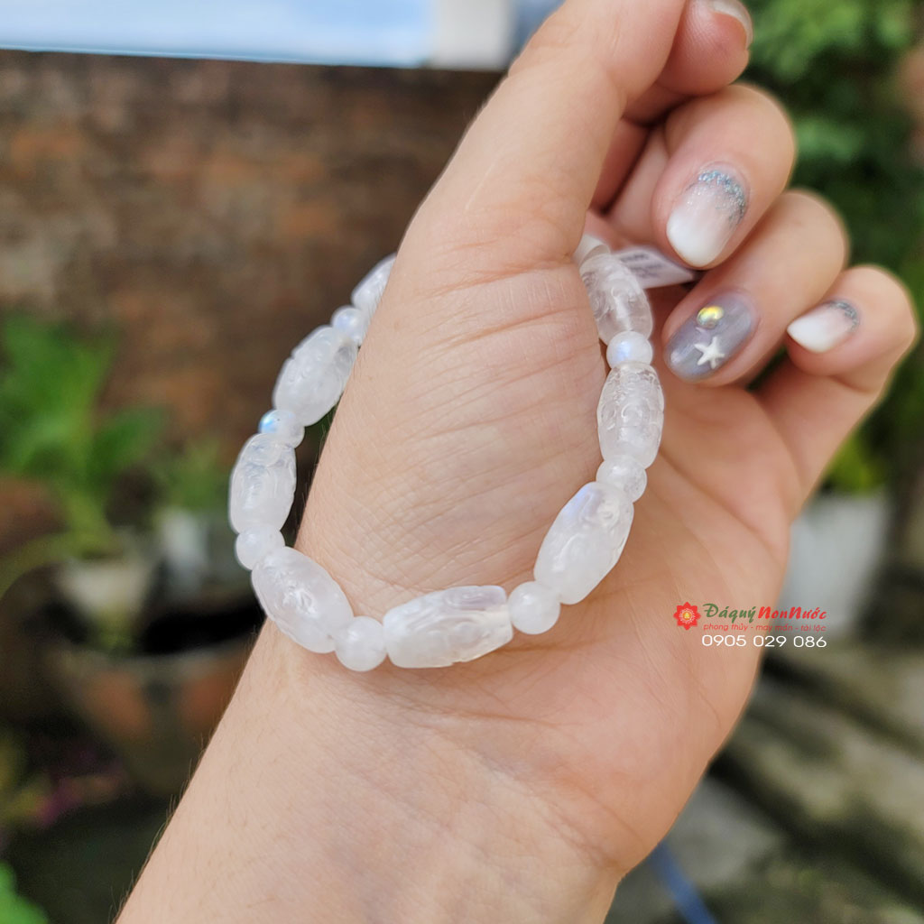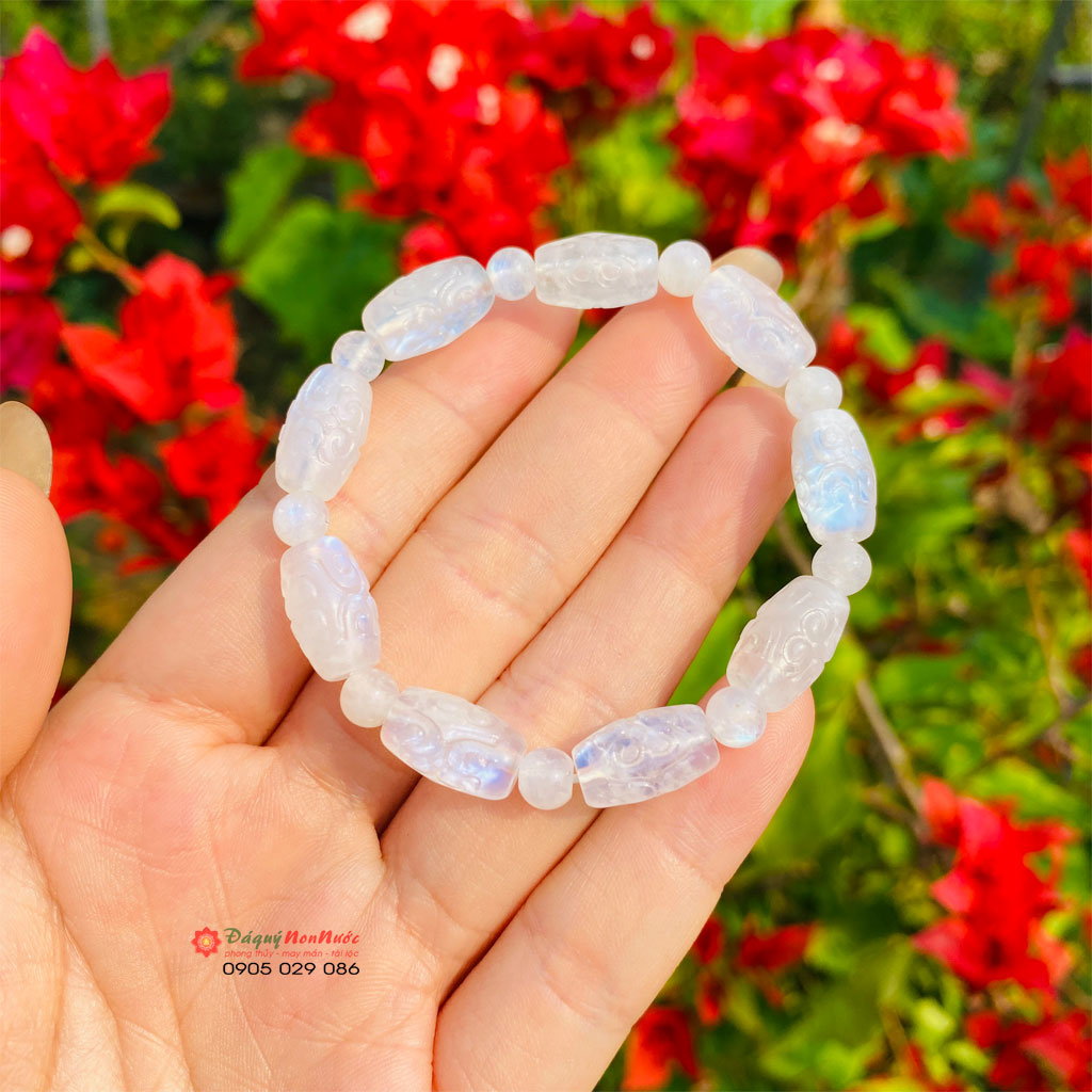 - Vòng tay lu thống đá Mặt Trăng là một món đồ trang sức tinh tế và ý nghĩa, được nhiều người yêu thích bởi vẻ đẹp thanh lịch, sang trọng cùng những công dụng phong thủy tuyệt vời. Sự kết hợp giữa hình tượng lu thống tượng trưng cho sự may mắn, tài lộc và viên đá Mặt Trăng mang năng lượng bình an, dịu nhẹ sẽ mang đến cho người đeo nhiều lợi ích về mặt tinh thần và sức khỏe.