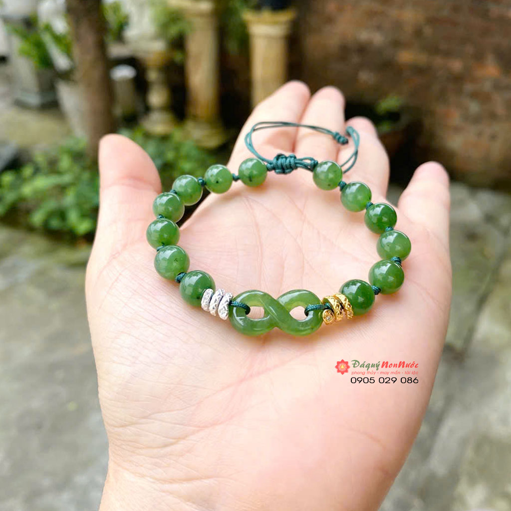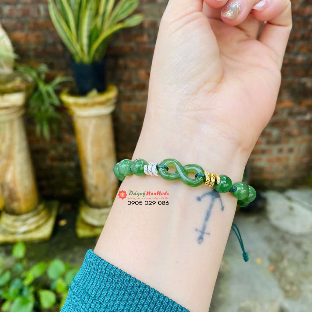 Vòng tay như ý nguyện ngọc bích 8ly mix charm bạc (bé Na) – Thanh lịch, may mắn và giàu ý nghĩa phong thủy