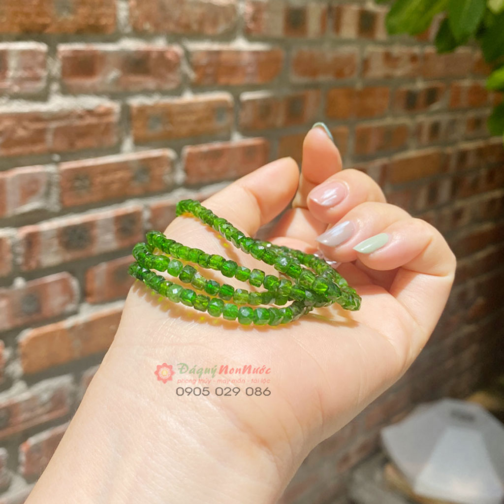 Vòng tay Thạch Anh Diopside Vuông Giác Cạnh là món đồ trang sức được nhiều người yêu thích bởi vẻ đẹp tinh tế, sang trọng và ý nghĩa phong thủy sâu sắc. Loại vòng tay này được chế tác từ đá Thạch Anh Diopside có màu xanh lục tự nhiên, được cắt thành những viên vuông vắn đẹp mắt, mang đến sự may mắn, tài lộc và bình an cho người đeo.